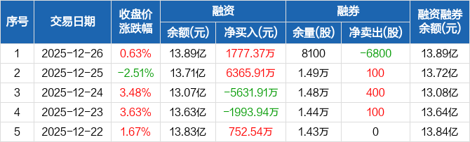 振德医疗:融资净买入1777.37万元,融资余额13.89亿元(12-26)