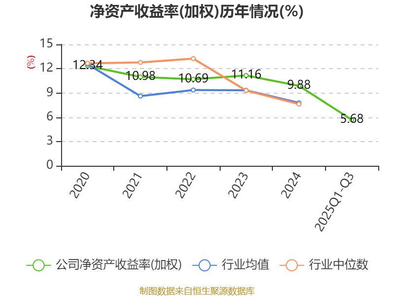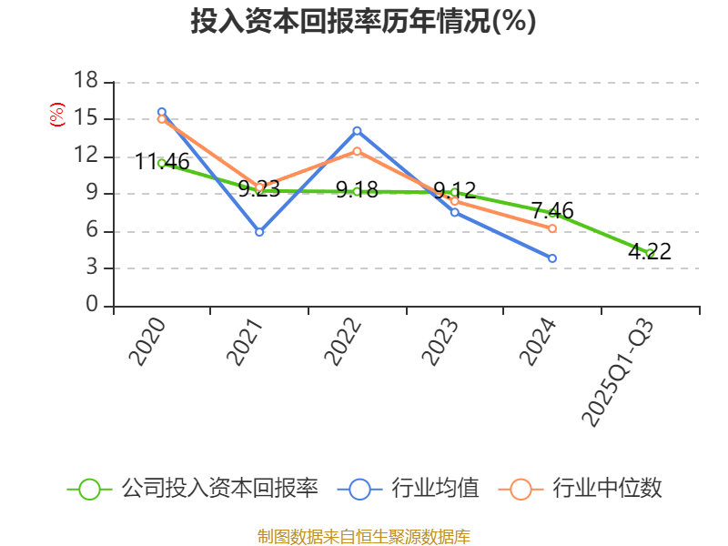 盈利能力方面, 2025年前三季度公司加权平均净资产收益率为5.68%,同比下降3.3个百分点。公司2025年前三季度投入资本回报率为4.22%,较上年同期下降1.6个百分点。
