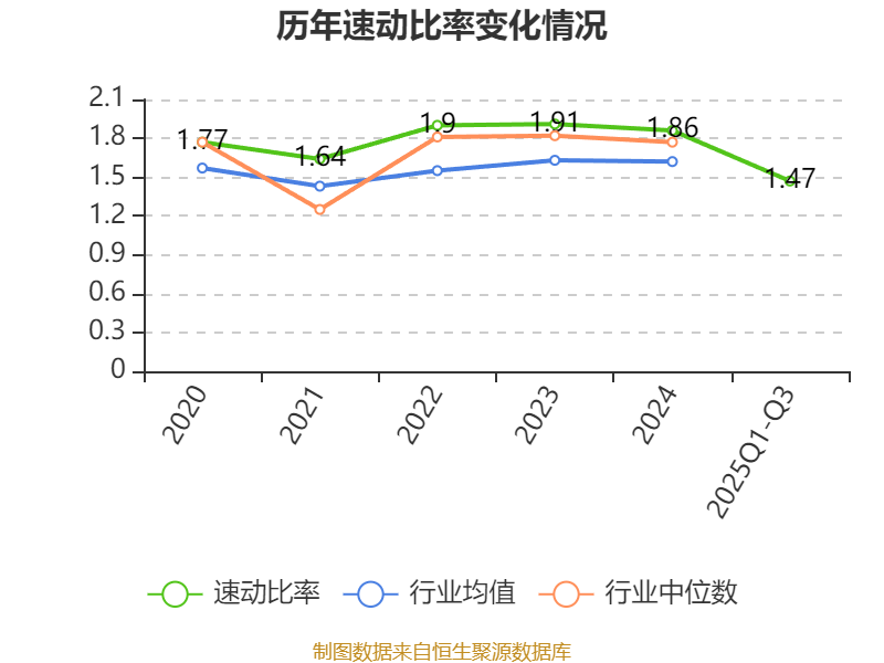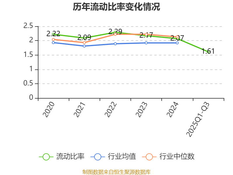 2025年前三季度,公司流动比率为1.61,速动比率为1.47。