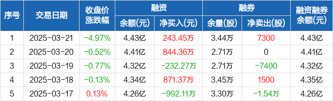 旭升集团:融资净买入243.45万元,融资余额4.43亿元(03-21)
