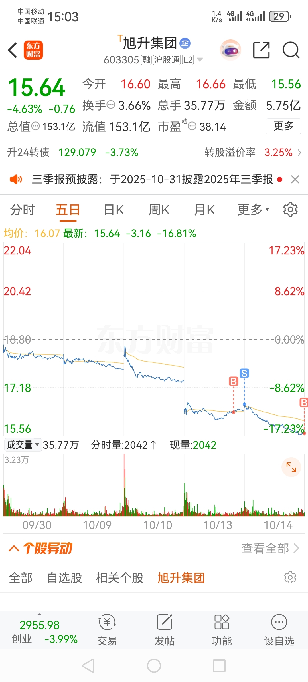 $旭升集团(SH603305)$ 昨买今卖 T了5个点 还不错。涨回16.26就撤了 懂的都懂