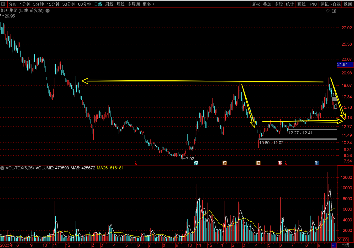 现在是放量扫了今年2月高点后的回调,2月高点回调排除掉突发关税影响是33%左右,这次再回调33%大概在13-13.5之间可能会企微,还有8-12%的回调空间。