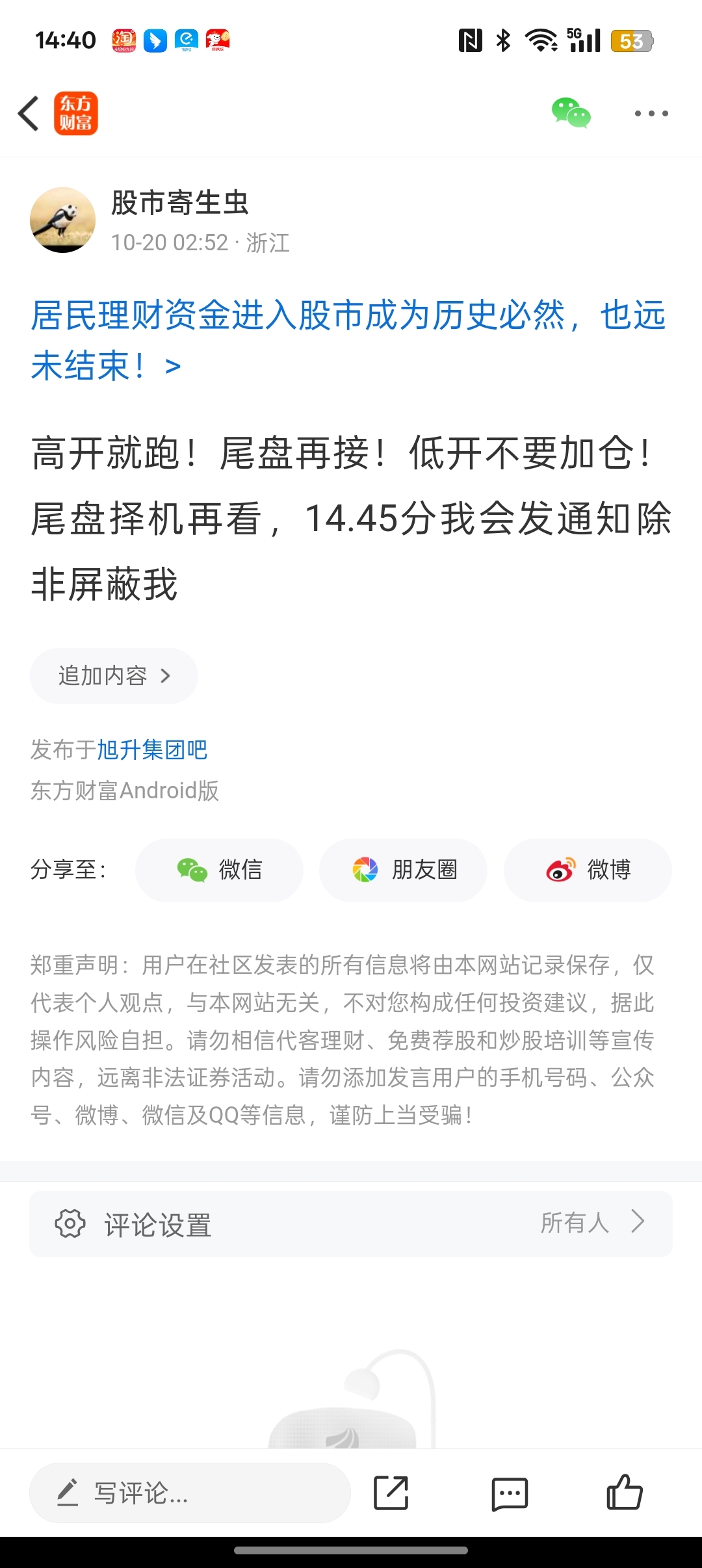 温馨提示: 1.根据《证券法》规定,禁止编造、传播虚假信息或者误导性信息,扰乱证券市场;2.用户在本社区发表的所有资料、言论等仅代表个人观点,与本网站立场无关,不对您构成任何投资建议。用户应基于自己的独立判断,自行决定证券投资并承担相应风险。《东方财富社区管理规定》