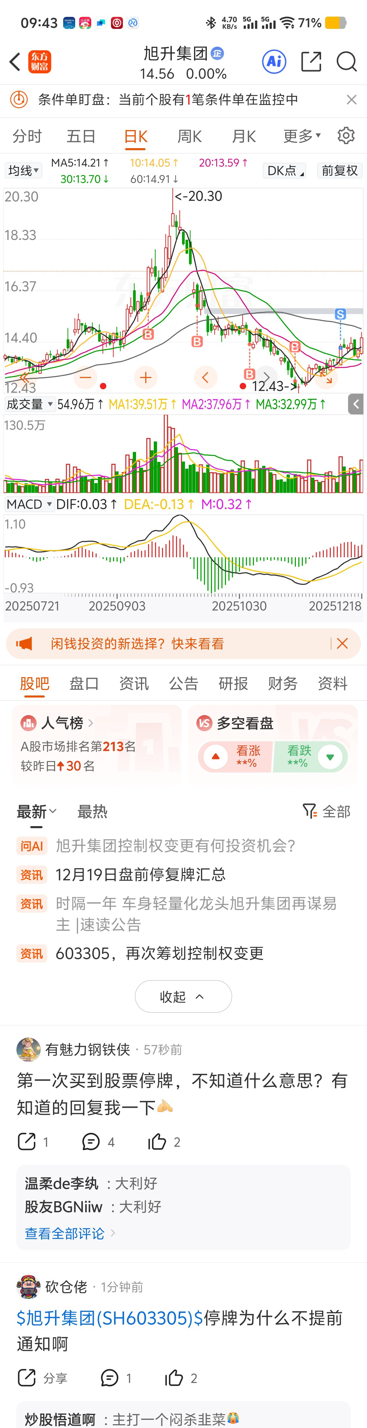 $旭升集团(SH603305)$ 昨天市场差钱,特斯拉和相关产业链都跌好几个点,但旭升一枝独秀涨了三四个点,今天出来停牌公告,感情又有人抢跑了吧昨天?