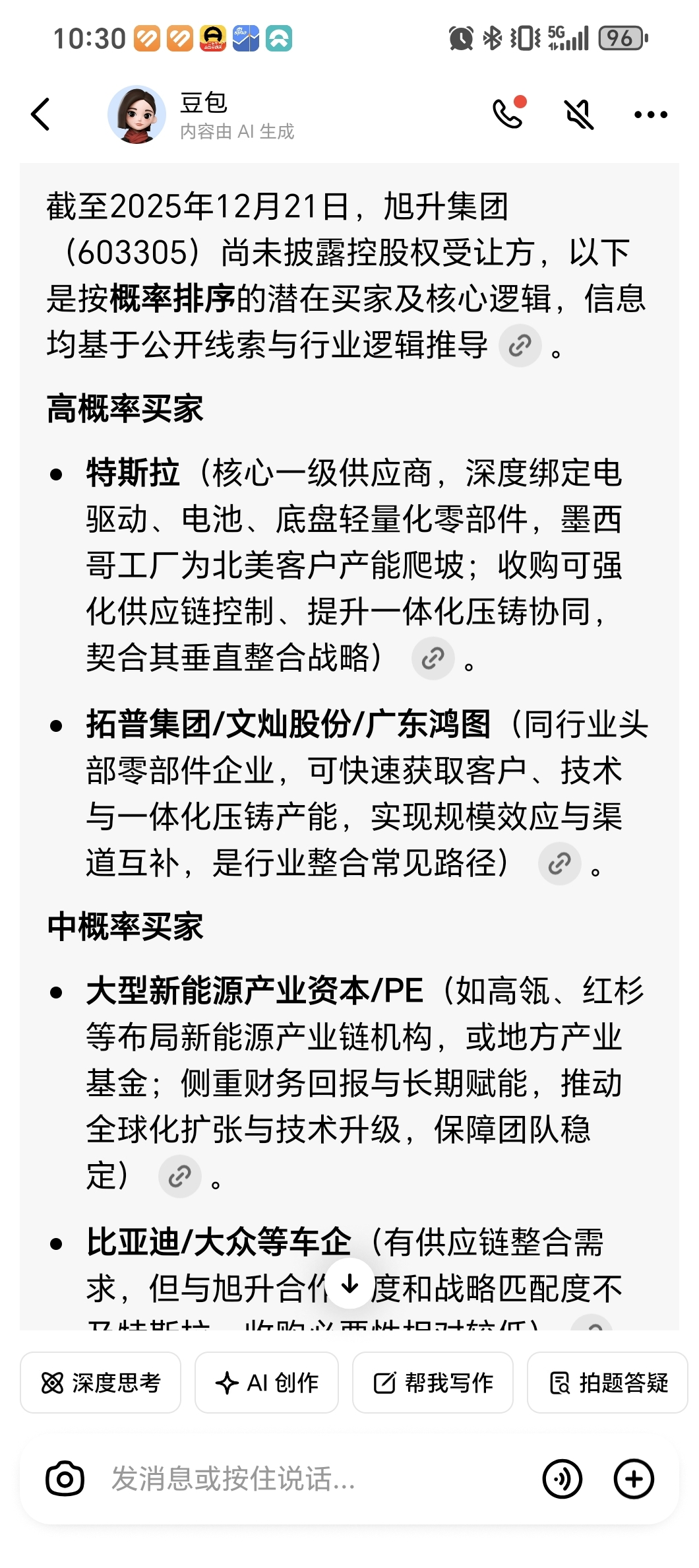 $旭升集团(SH603305)$ 豆包说,特斯拉收购的概率最高大笑