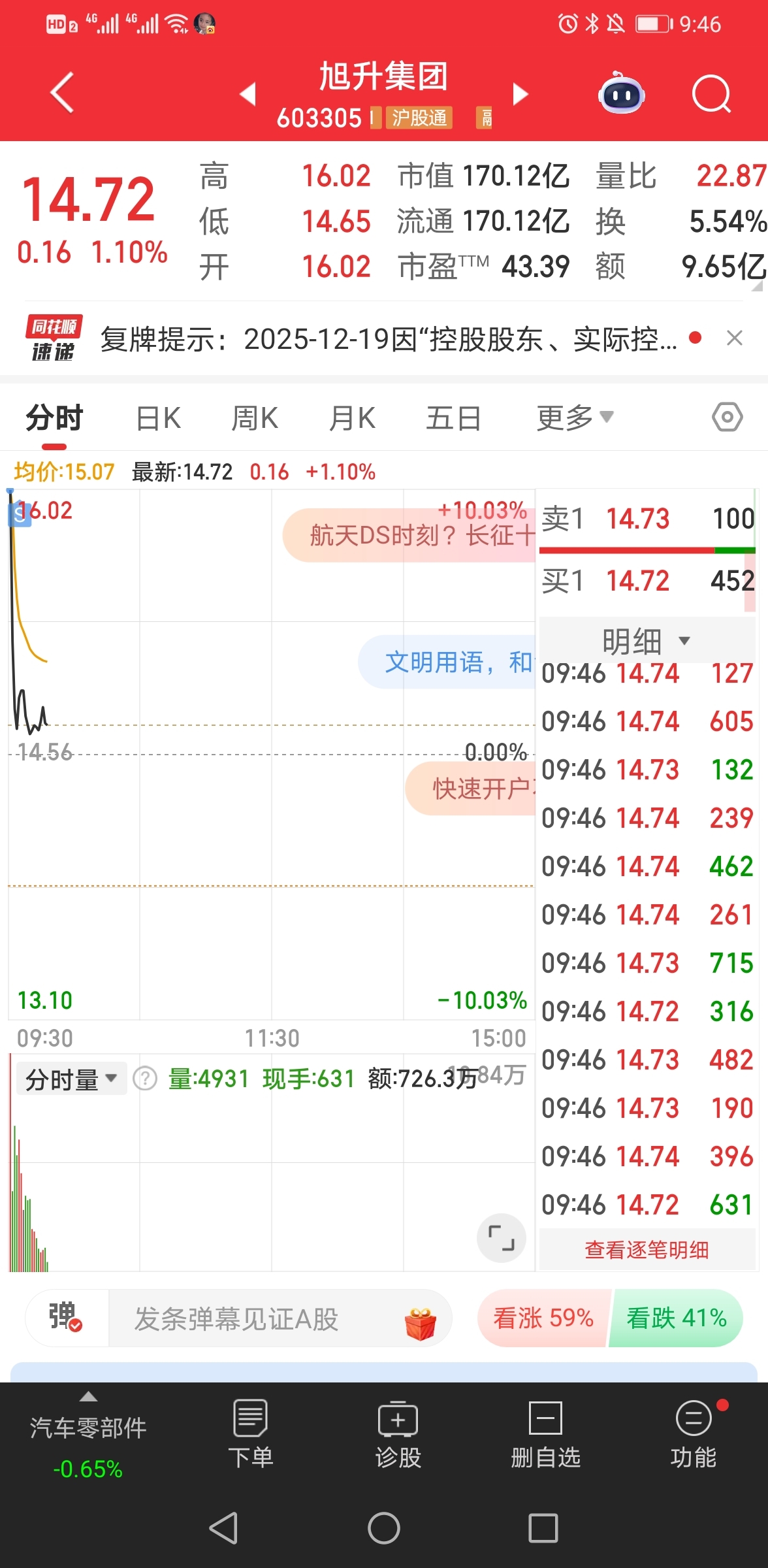 $旭升集团(SH603305)$ 还好集合竞价涨停卖了一半