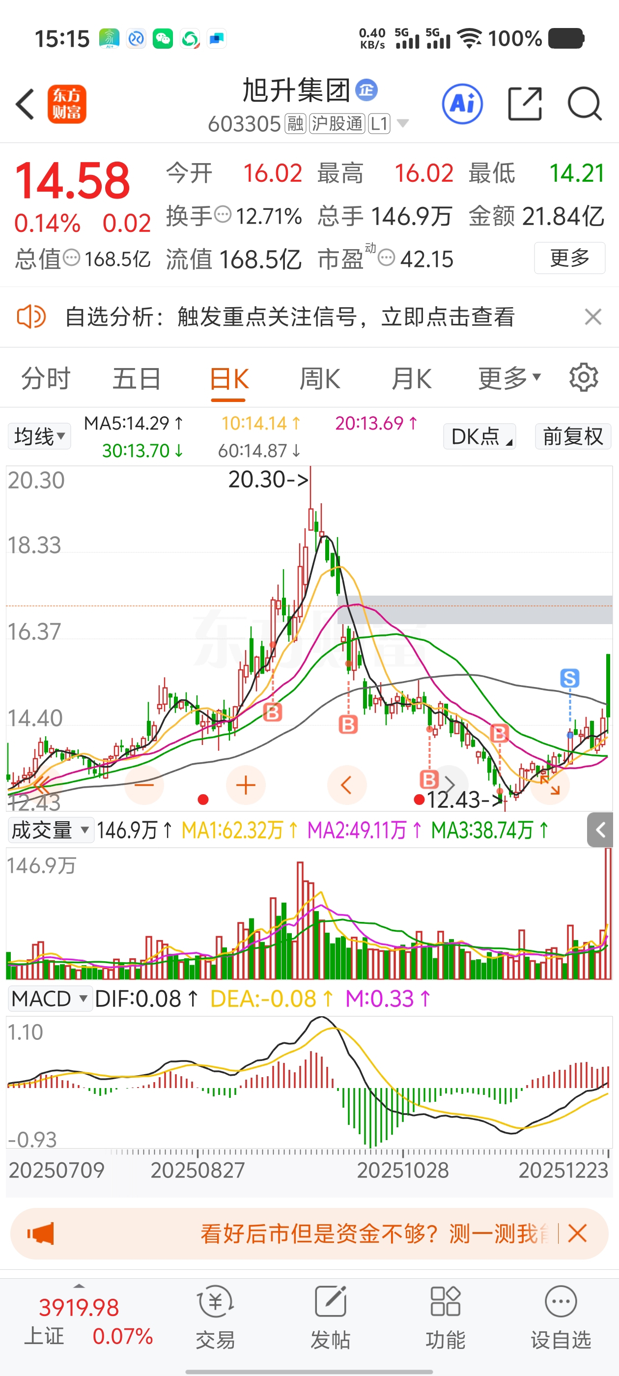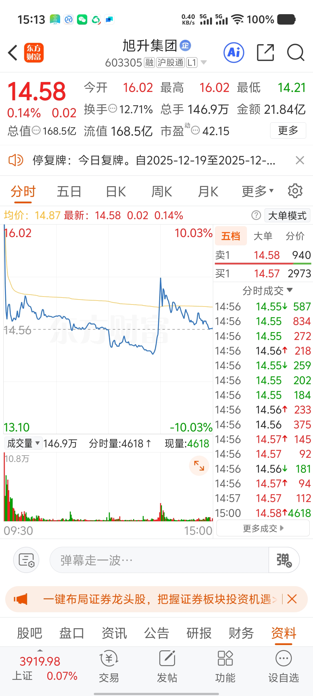 $旭升集团(SH603305)$ 这就一天天的,算 22 个亿成交,算天量吗?主力还纯溜了 2 个亿,真是无语呀。每一次放巨量旭升都继续往下跌,这一会这么低位还会继续跌吗?再一个跌停就,那啥资产流失了,应该也不至于