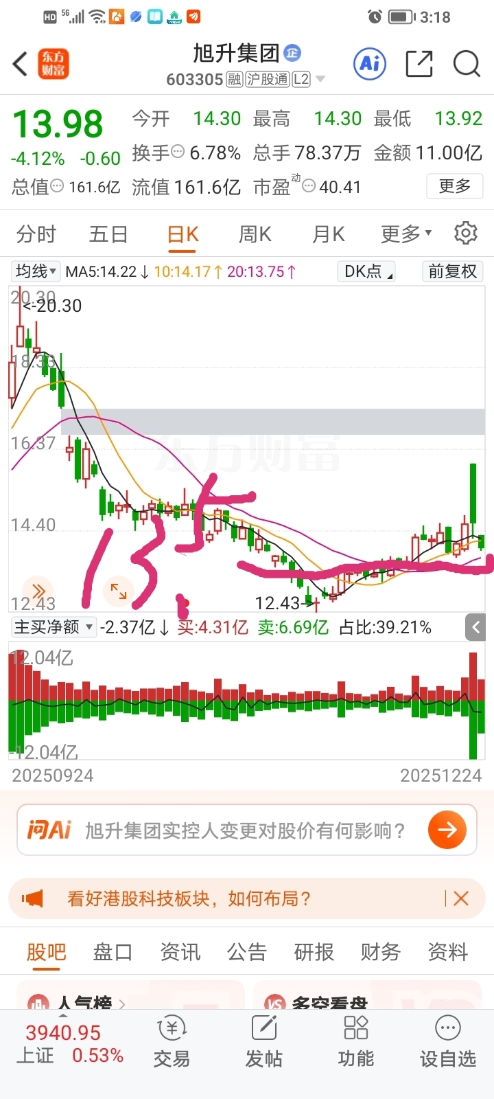 $旭升集团(SH603305)$ 明日大概率会是个超跌反弹形态,昨日一根长阴线压力很大,不要期待过多。关注今日主力在13.90的短暂支撑位以及前期13.50的支撑,做长线的可以大胆持有。