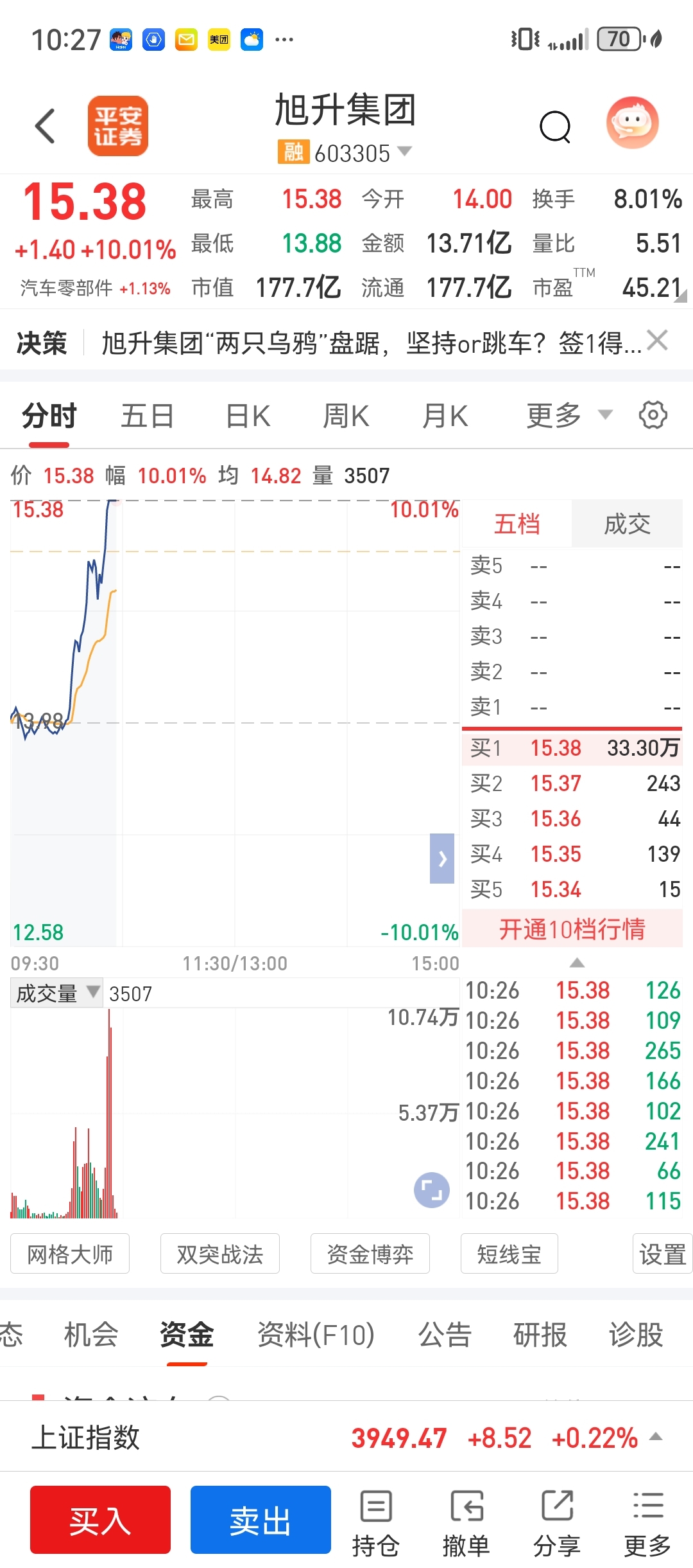 $旭升集团(SH603305)$ 舒服了