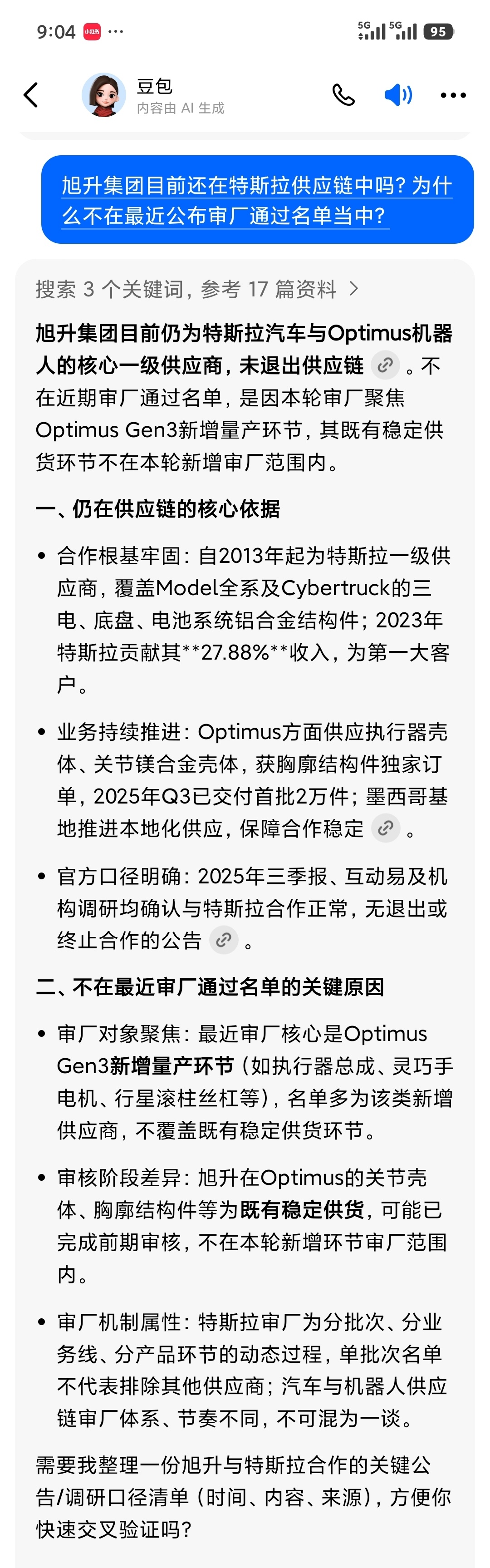 $旭升集团(SH603305)$ 看看旭升集团到底在不在特斯拉的核心供应链名单中?