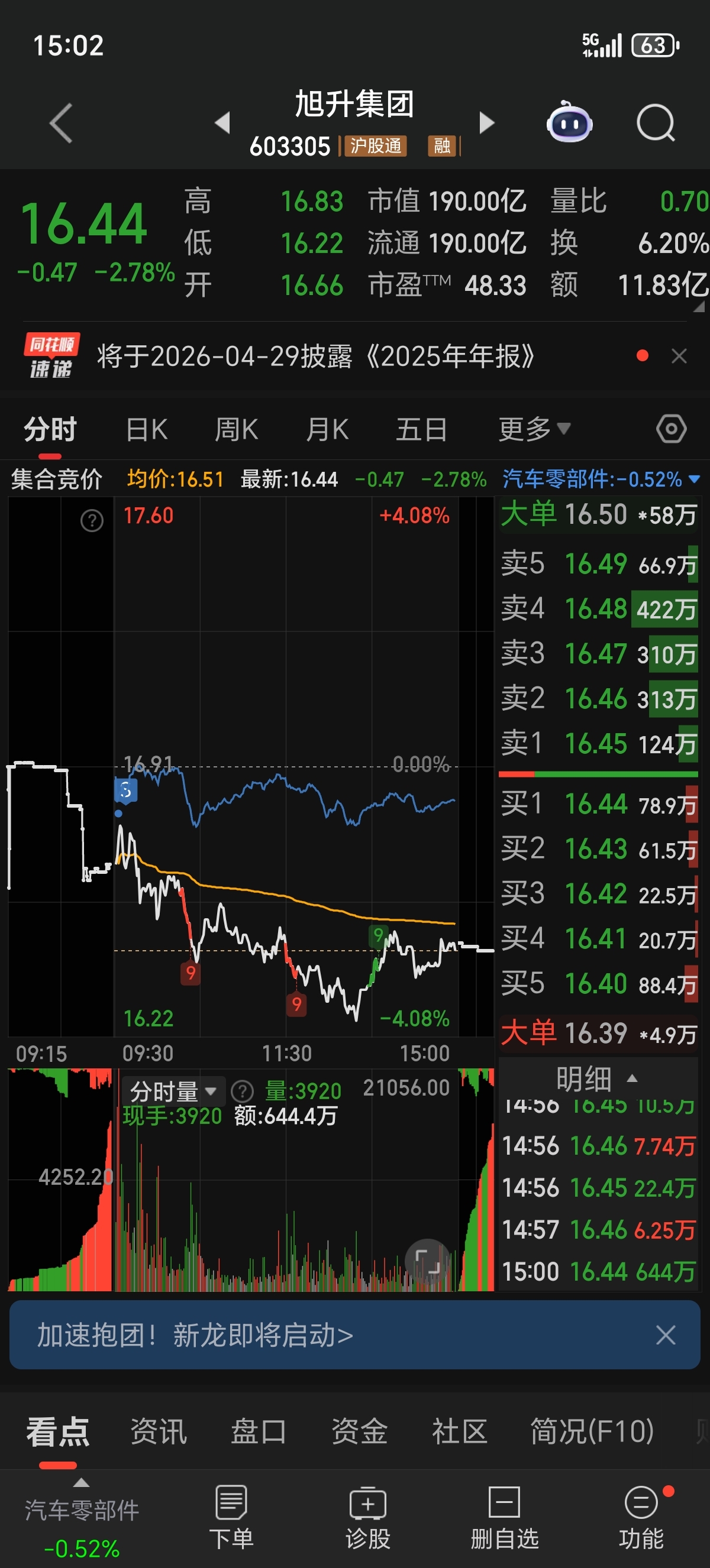 $旭升集团(SH603305)$ 早盘毅然决然的走了,拿这个票去其他票补仓做t,虽然今天总体也是亏2.5个点,但是回头过来看看旭日,感觉自己没亏多少