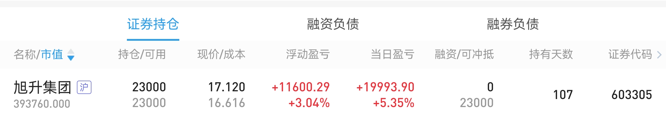 $旭升集团(SH603305)$ #实盘记录# 拿了一百多 天今天终于翻红啦,最高亏损11万。放长线钓大鱼。不翻翻不走!!