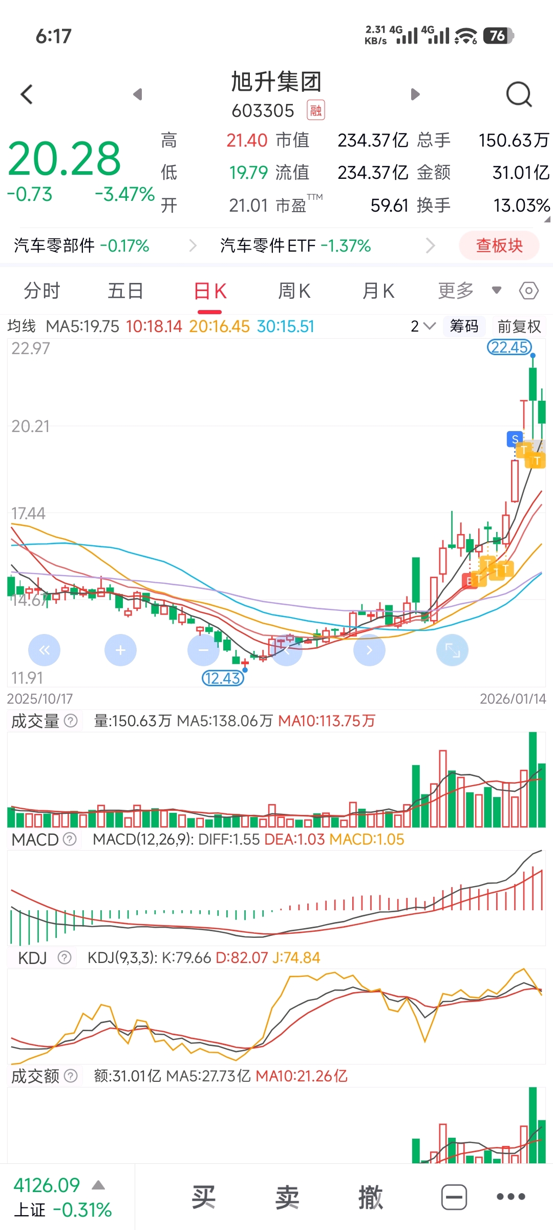 $旭升集团(SH603305)$ 趋势未破,回踩5日线回拉,回调洗盘结束,明天必反弹!