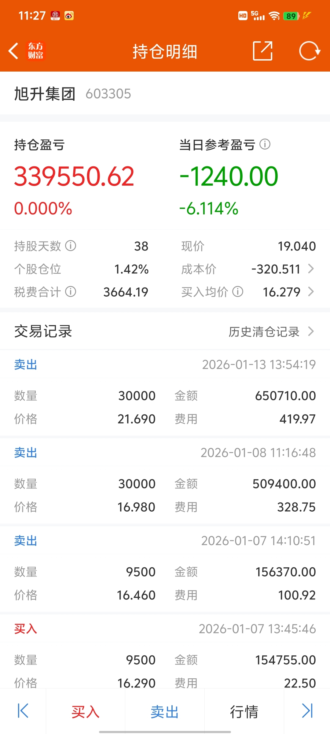 $旭升集团(SH603305)$ 还好跑了,留了十手三天亏了2千多