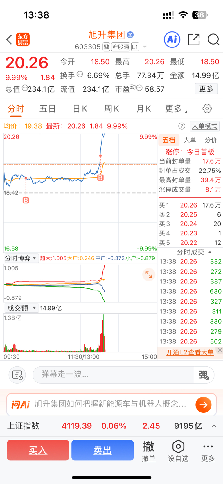 $旭升集团(SH603305)$ 早上入的后悔没有直接打满仓 追高了