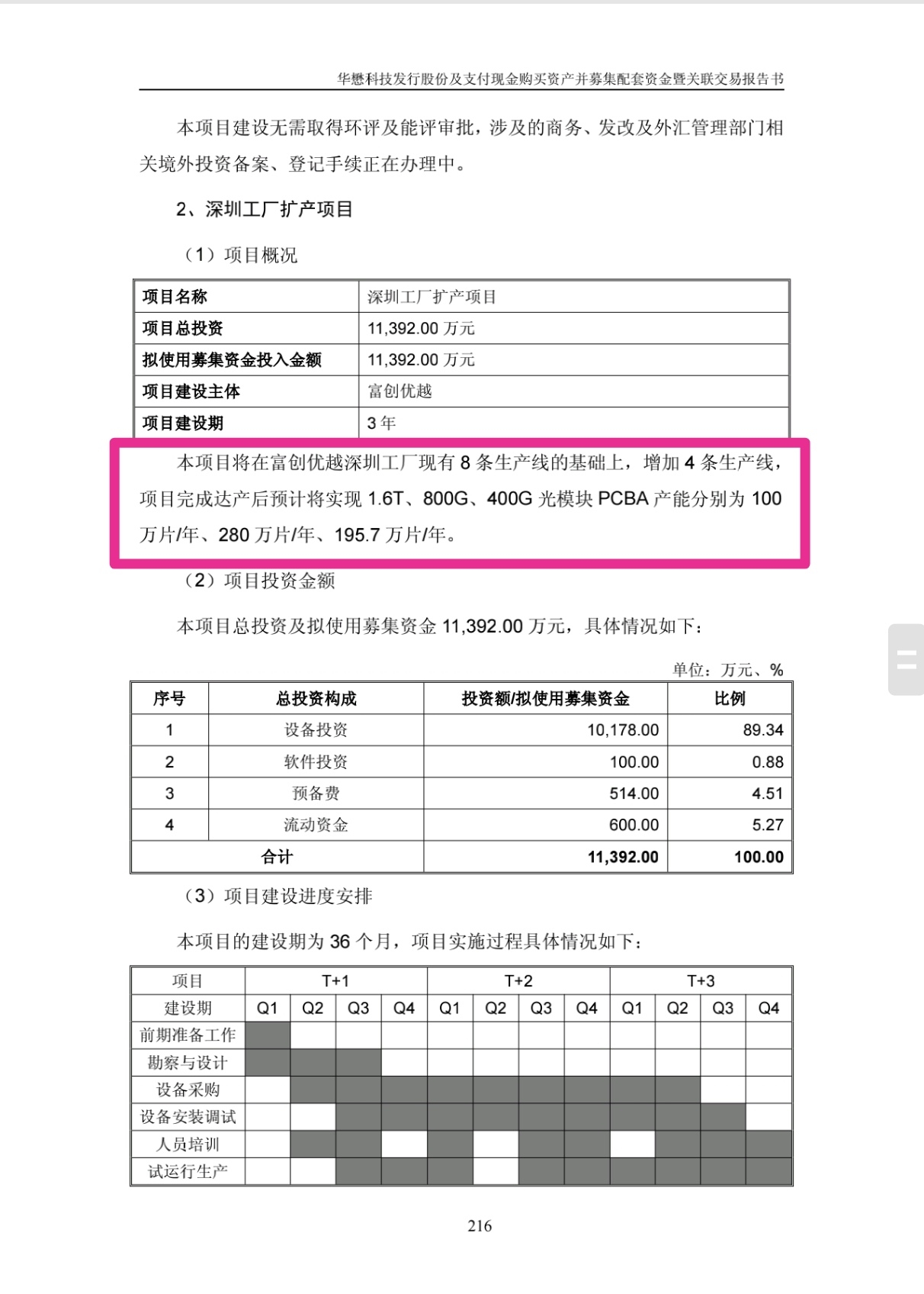 高附加值项目来了,年产1.6T光模块PCBA合计365.9万片+高速铜缆连接器5