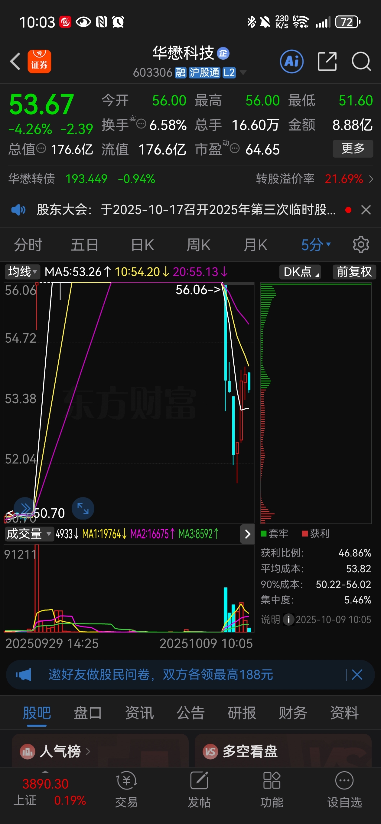 $华懋科技(SH603306)$ 上午这5分钟成交量,有点像诱空