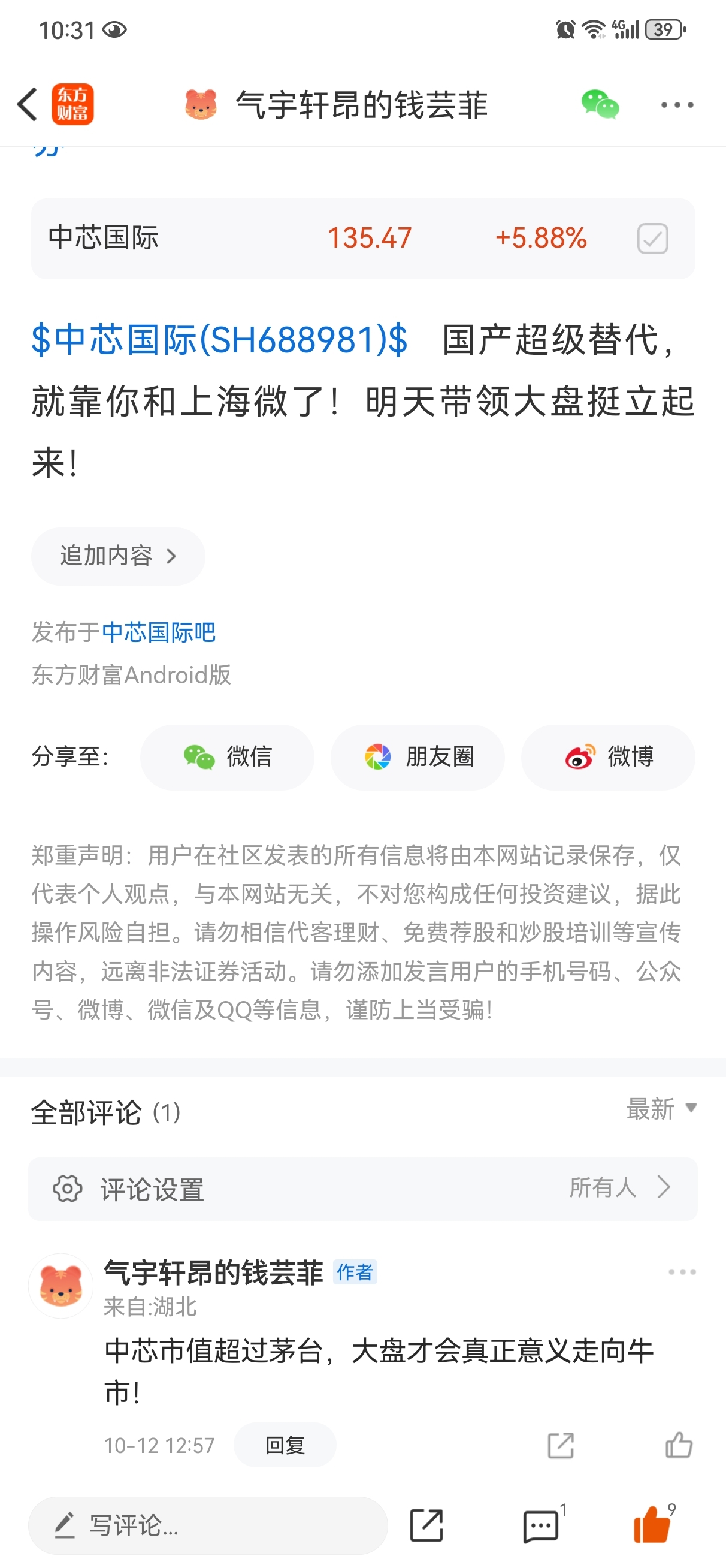 温馨提示: 1.根据《证券法》规定,禁止编造、传播虚假信息或者误导性信息,扰乱证券市场;2.用户在本社区发表的所有资料、言论等仅代表个人观点,与本网站立场无关,不对您构成任何投资建议。用户应基于自己的独立判断,自行决定证券投资并承担相应风险。《东方财富社区管理规定》