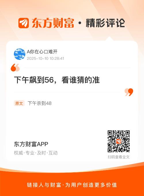 还叫吗?还56,一会46咯。天天唱多,骗散户接盘hh 演的真好//@A你在心口难开 : 下午飙到56,看谁猜的准