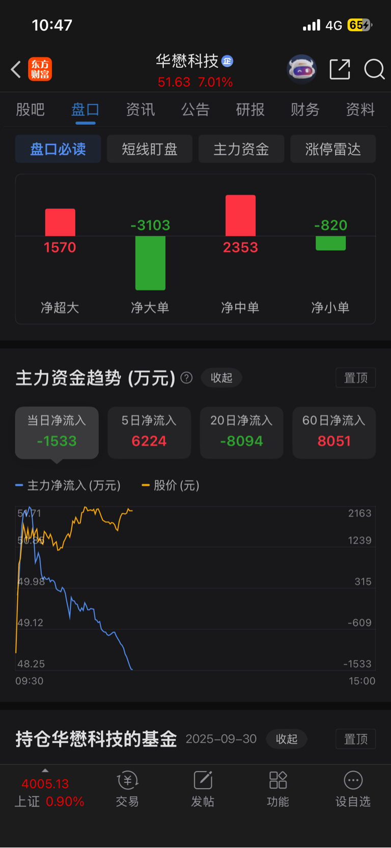 $华懋科技(SH603306)$ 主力流出这么多?