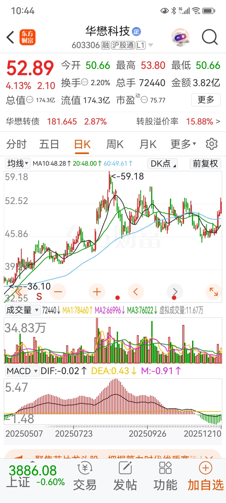 $华懋科技(SH603306)$ 有点意思,看看回调到哪