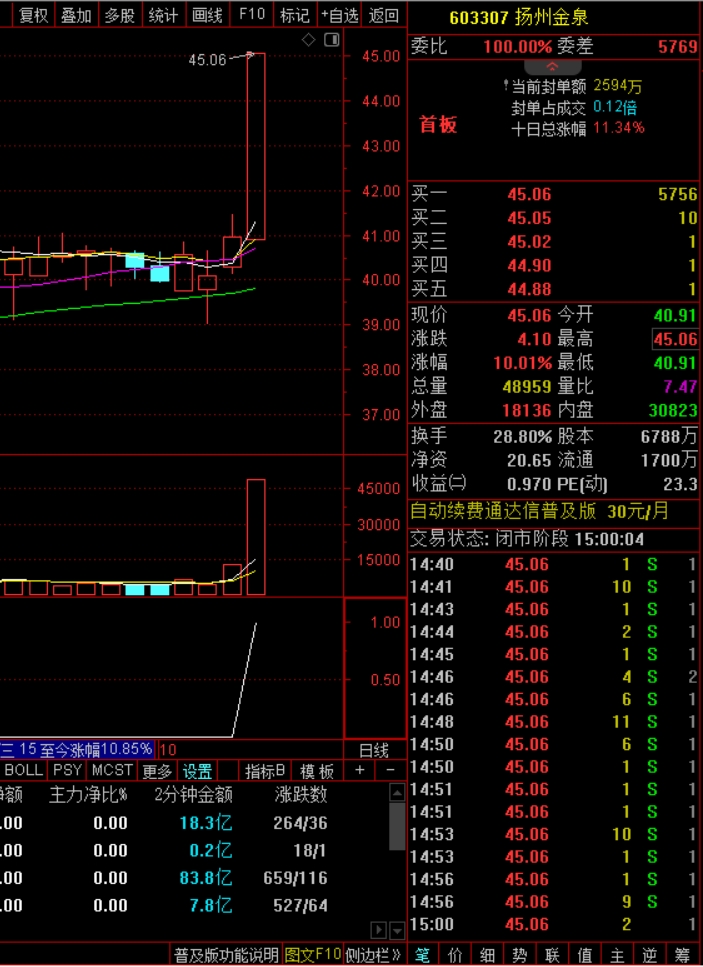 $扬州金泉(SH603307)$ 做股票不要追高更不要打板,想实现稳定复利就要做低位竞价首板,龙抬头竞价首板王选股软件,开盘前竞价选股不做马后炮,买在低位3个点左右,博当天或者次日溢价甚至首板涨停!龙抬头竞价首板王主板专门抓10厘米首板涨停!