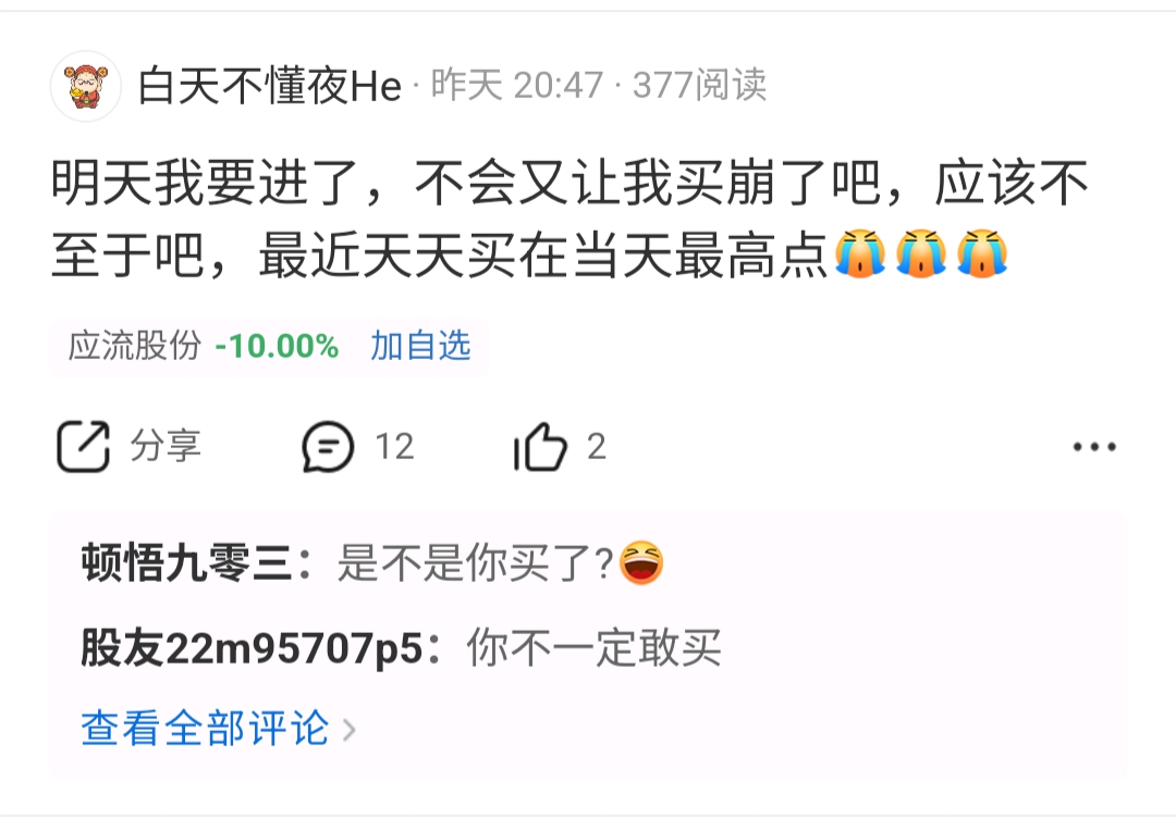 $应流股份(SH603308)$ 牛,看中那个那个跌停