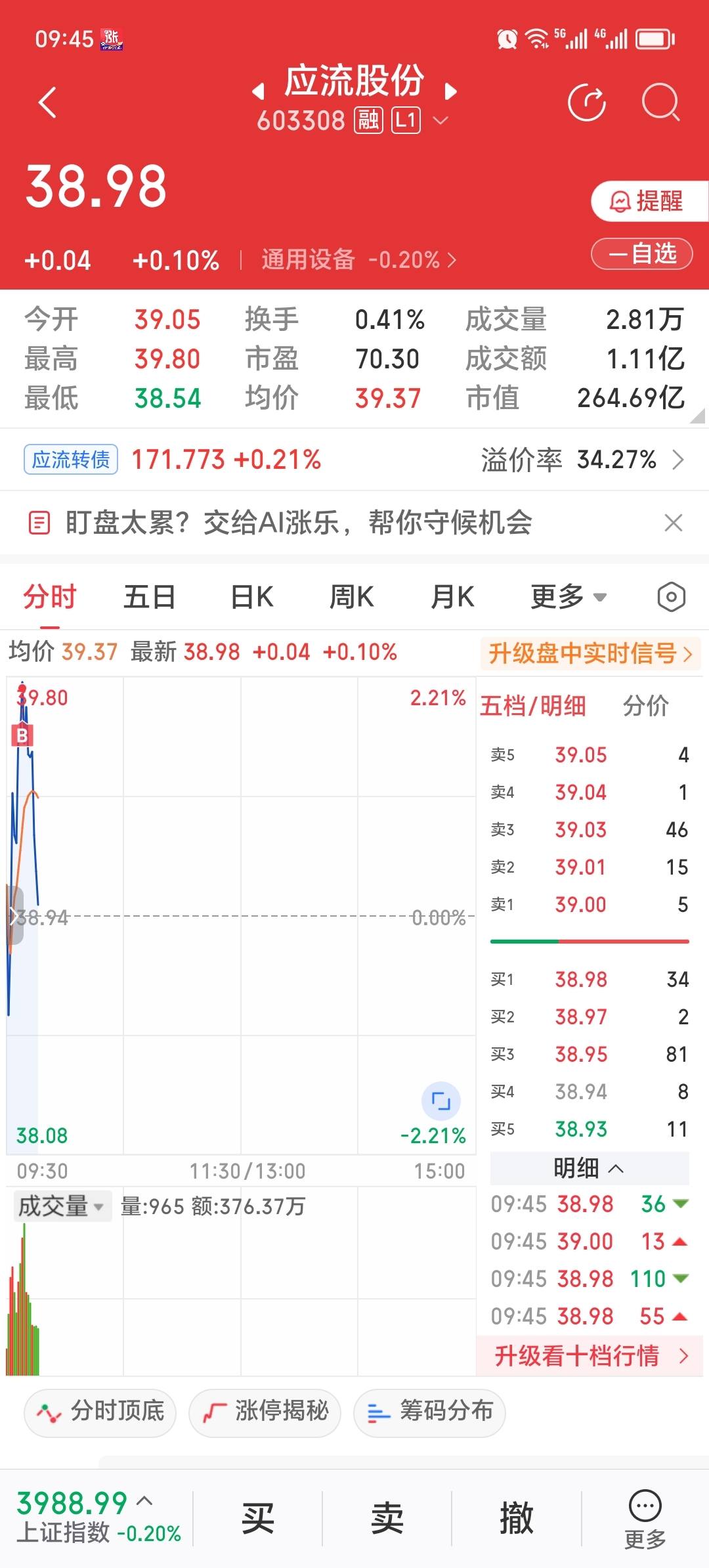 $应流股份(SH603308)$ 啥意思?就差我这几万块啊?一来就挂山顶