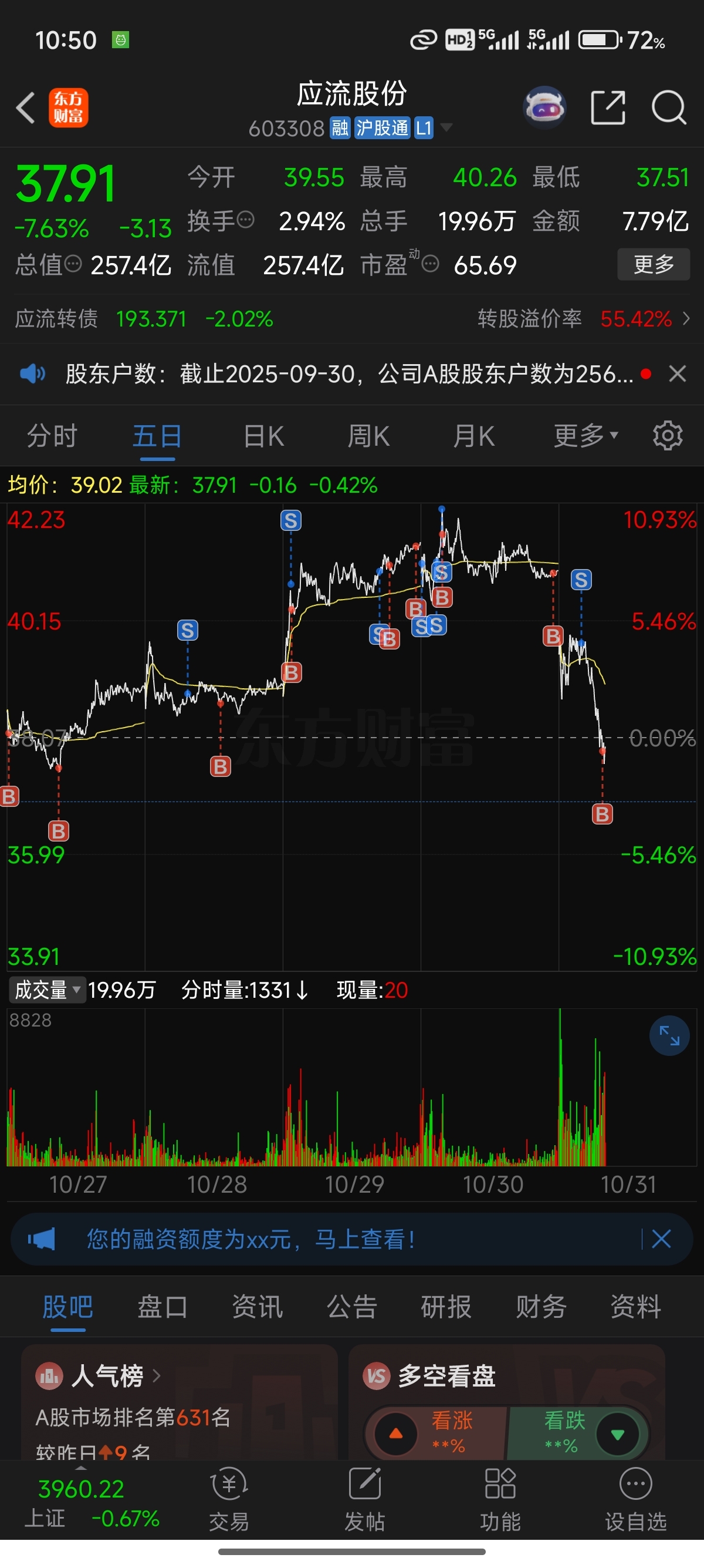 $应流股份(SH603308)$ 继续干 应该不至于大跌吧