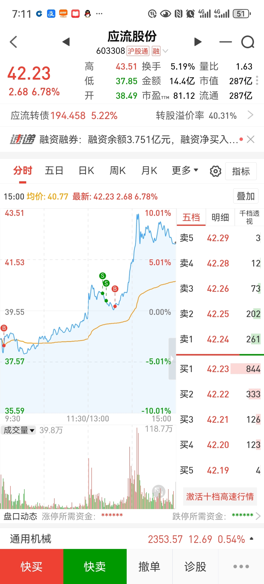 $应流股份(SH603308)$ 今日来得太急,差点就被整出去了。吓坏老牛啦