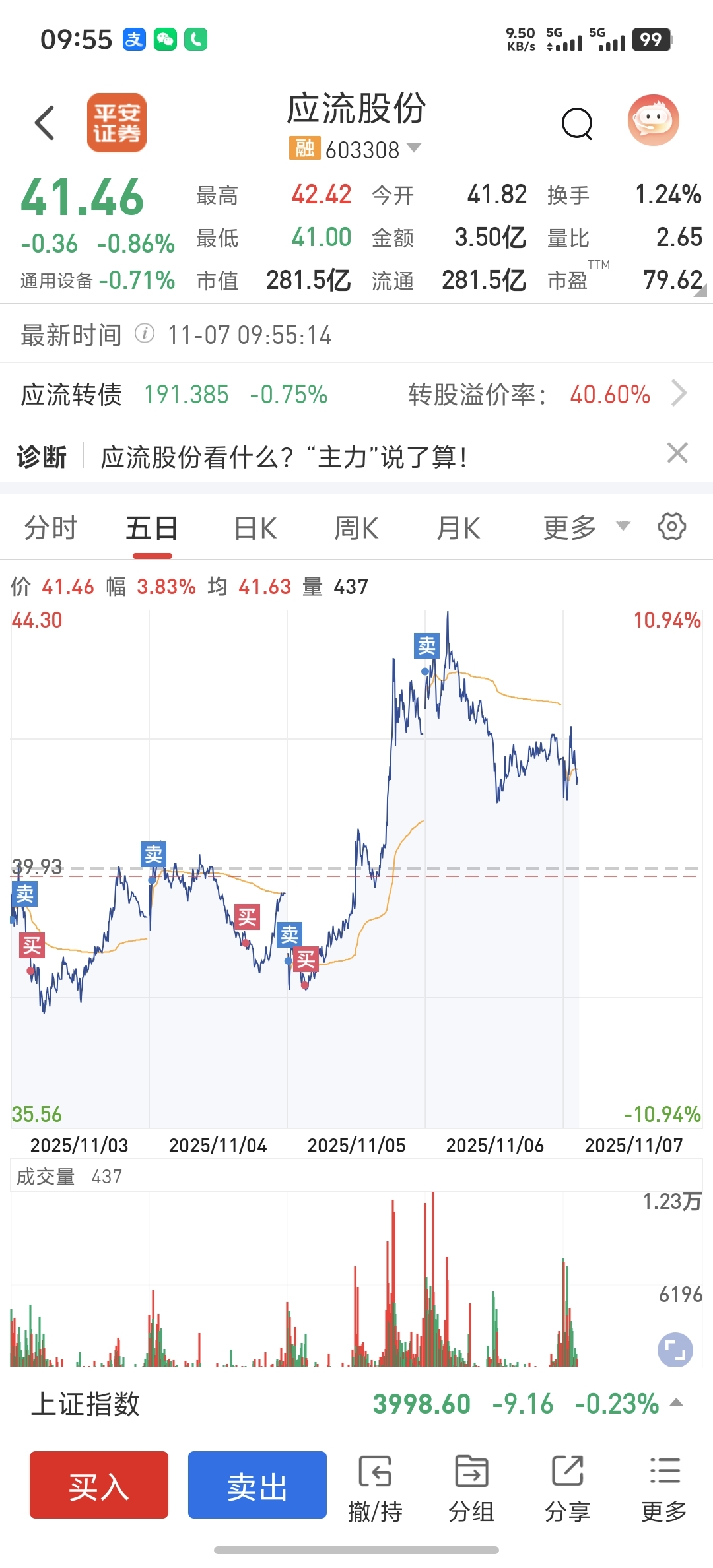 $应流股份(SH603308)$ 按趋势今明两天应该在41下面,40左右,然后再上涨