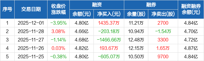 应流股份:融资净买入1435.37万元,融资余额4.8亿元(12-01)
