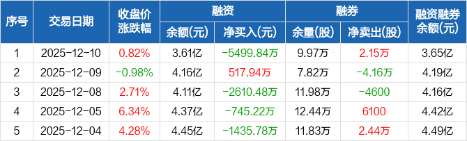 应流股份:融资净偿还5499.84万元,融资余额3.61亿元(12-10)