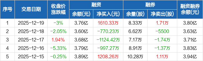 应流股份:融资净买入1610.33万元,融资余额3.76亿元(12-19)