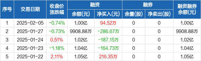 巍华新材:融资净买入94.52万元,融资余额1亿元(02-05)