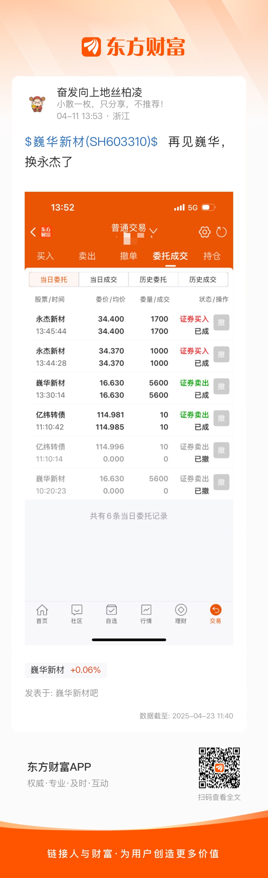 $巍华新材(SH603310)$  再见巍华,换永杰了