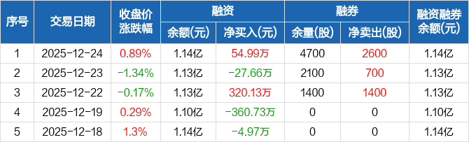 巍华新材:融资净买入54.99万元,融资余额1.14亿元(12-24)