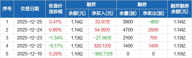 巍华新材:融资净买入33.91万元,融资余额1.14亿元(12-25)
