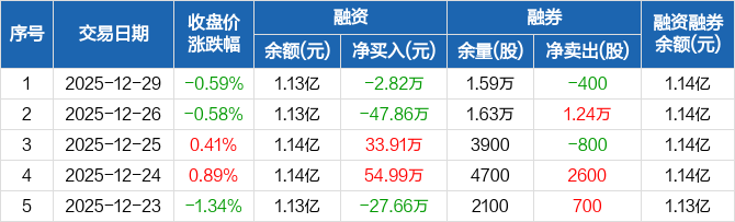 巍华新材:融资净偿还2.82万元,融资余额1.13亿元(12-29)