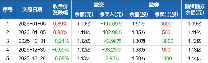 巍华新材:连续6日融资净偿还累计488.56万元(01-06)