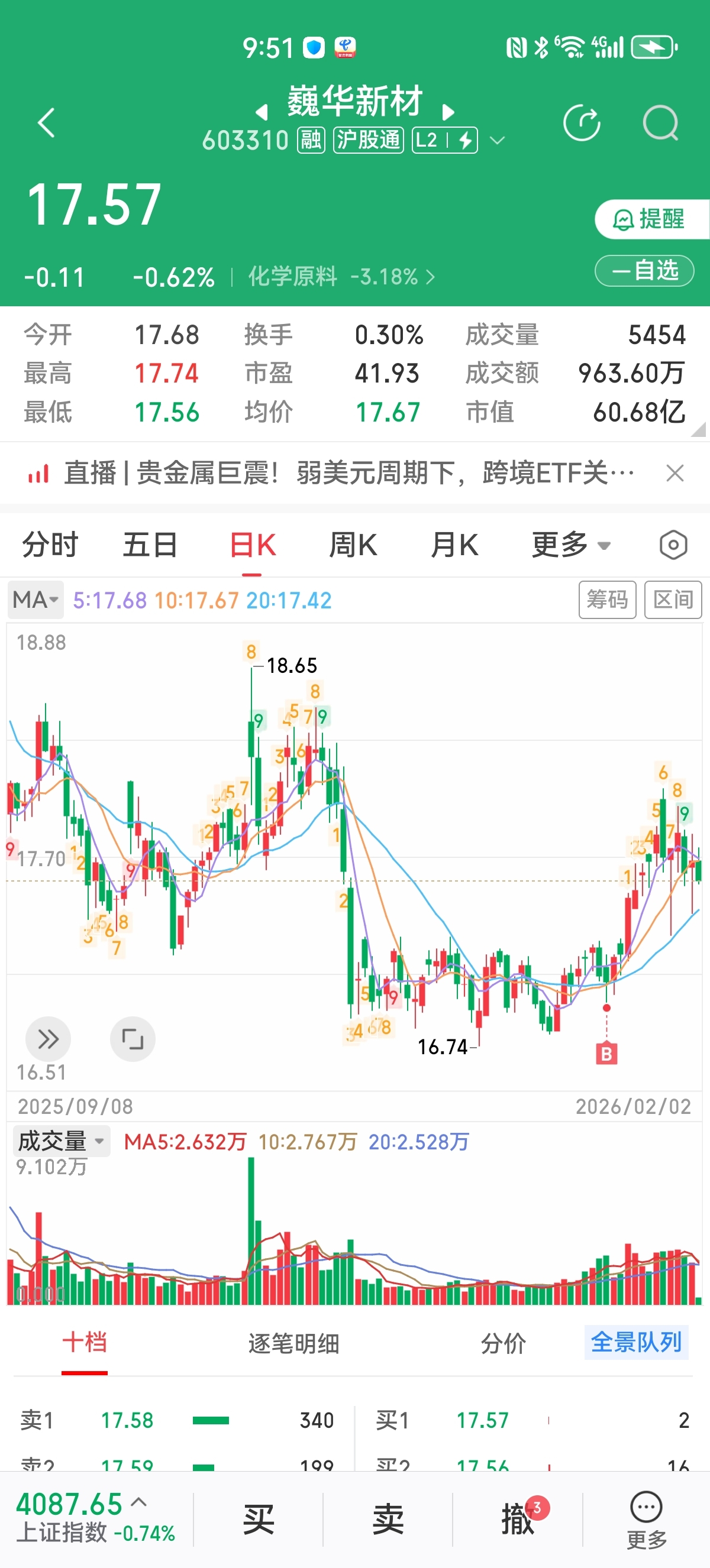 $巍华新材(SH603310)$ 跌破成本再买点