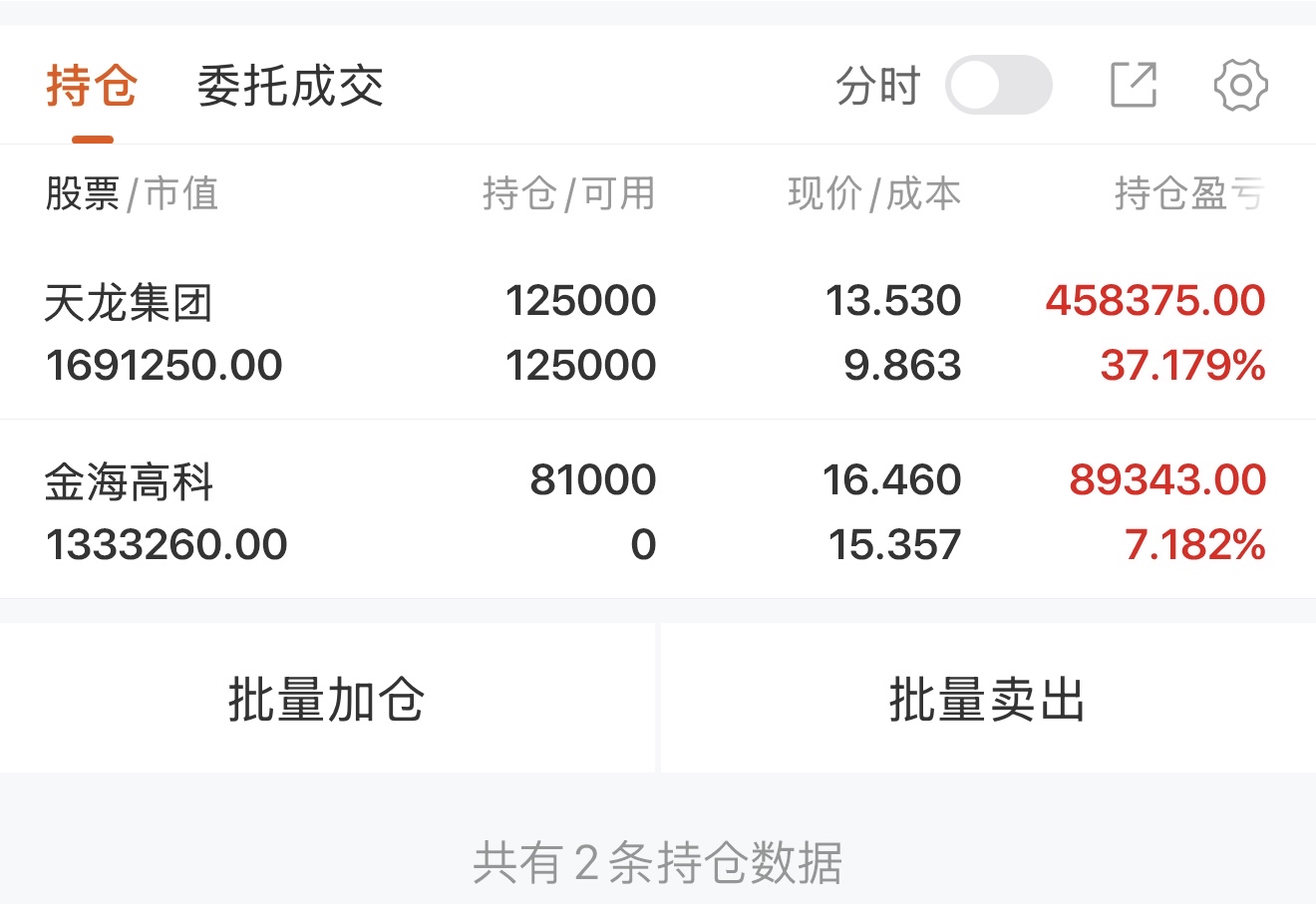 今日建仓金海高科,继续持仓天龙集团
