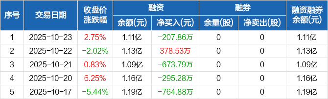 西典新能:融资净偿还207.86万元,融资余额1.11亿元(10-23)