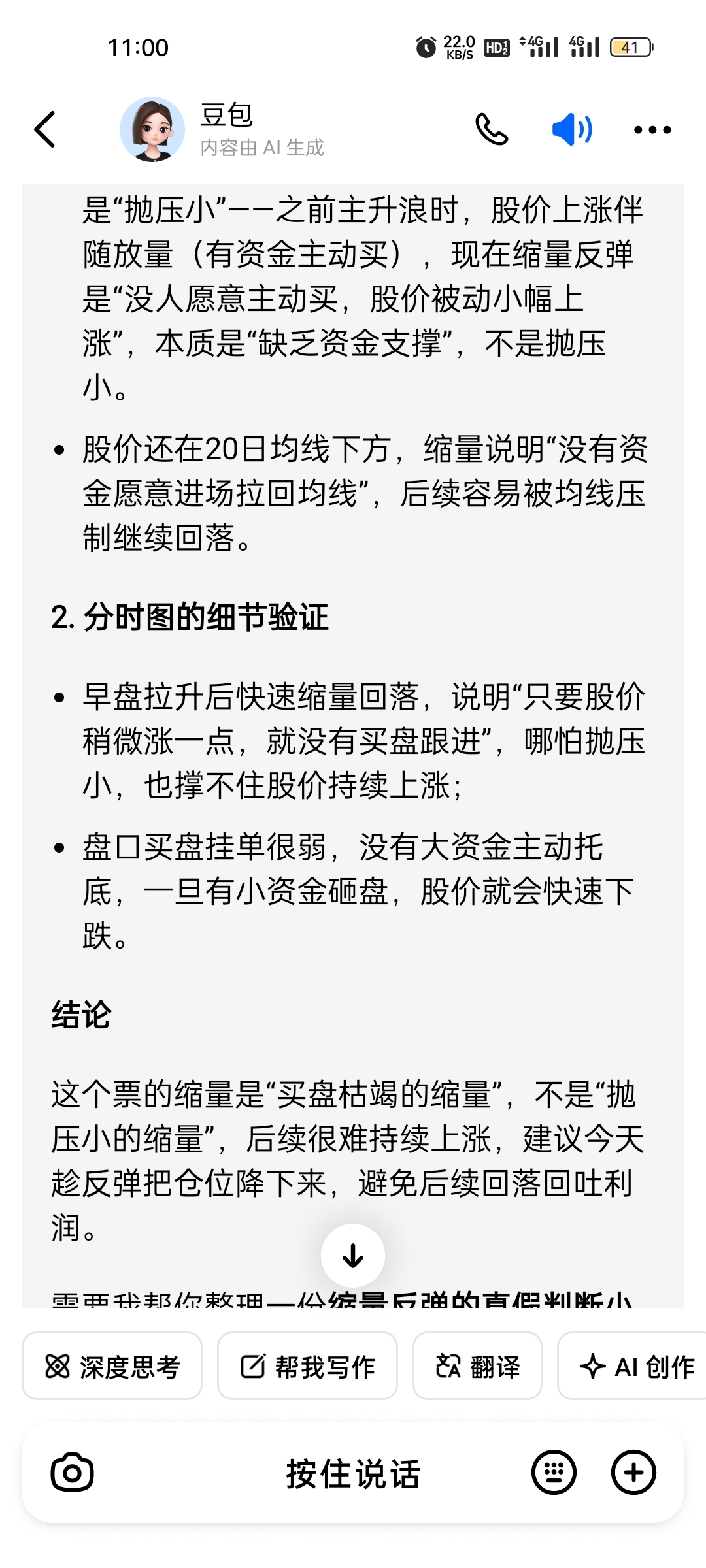 为啥豆包建议我今天卖掉呢?缩量上涨不是还会涨吗?抛压小啊