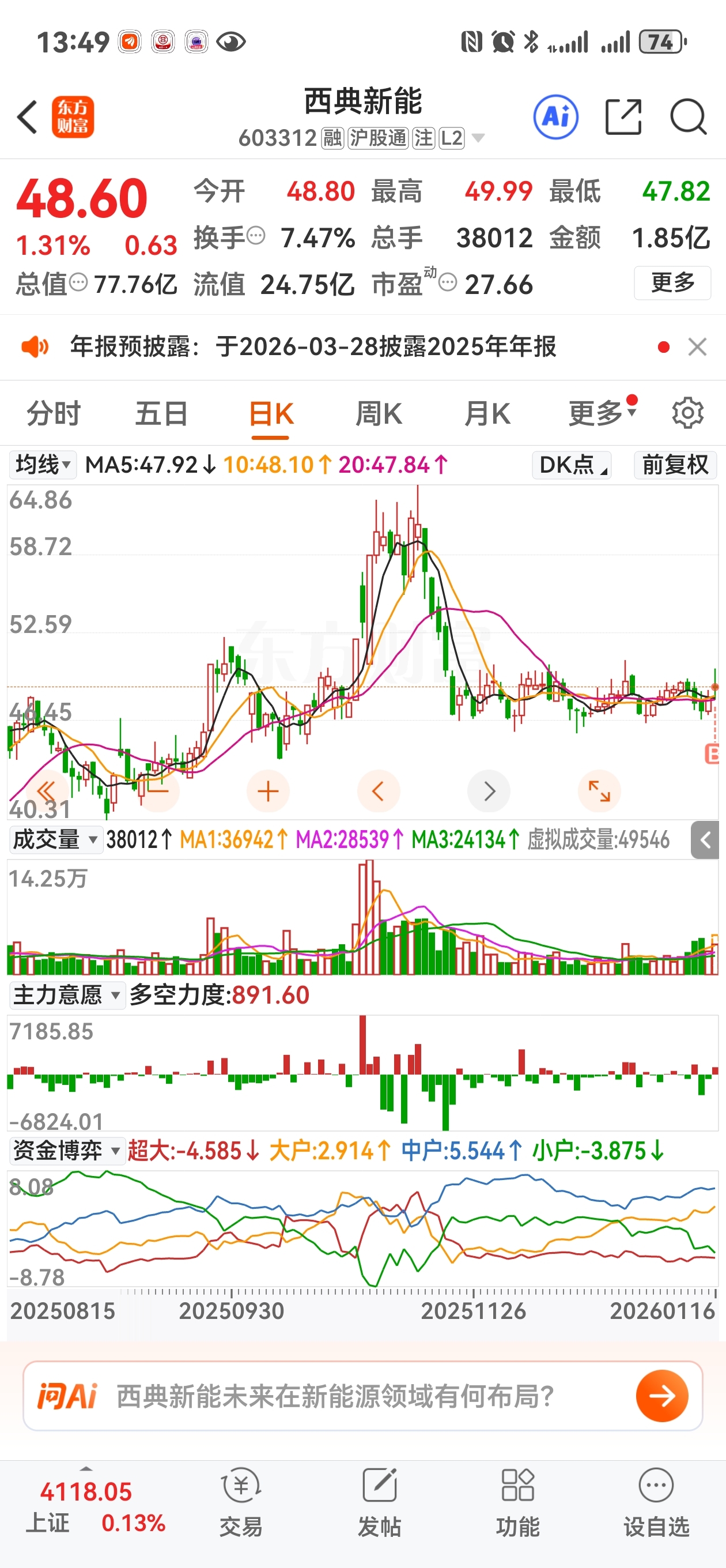 $西典新能(SH603312)$ 观察一阵,各方面指标已达到预期兄弟们可冲