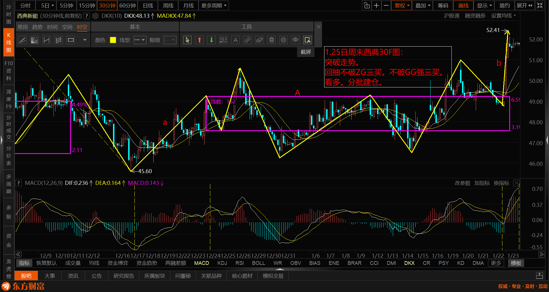 1.这票基本面,月周图一目了然。建仓选择日,30F突破ZG。激进操作。稳健操作等突破笔完成后,回抽确认三买。不然结构不稳。