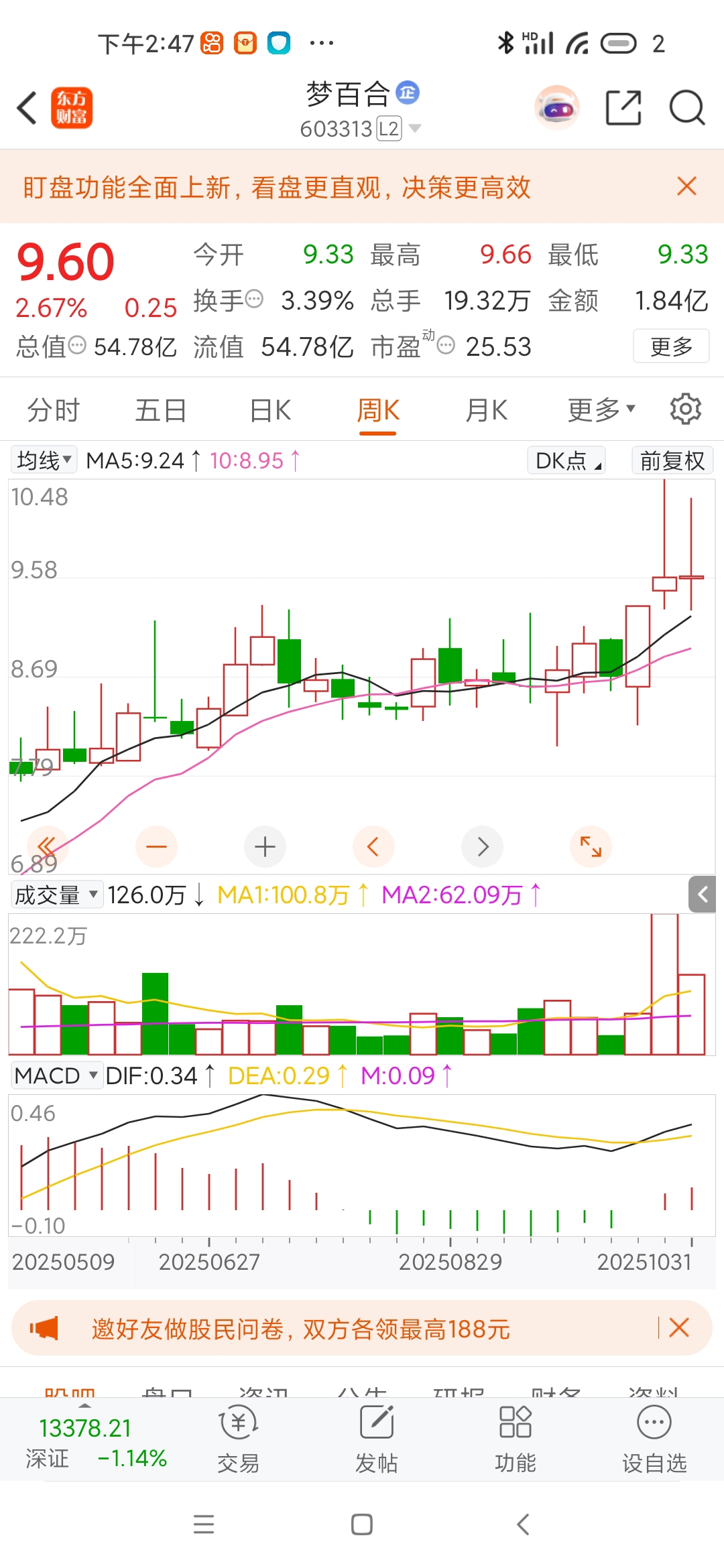 $梦百合(SH603313)$ 周线指北针,仙人指路,通常这种指路针会出现3次以上才能突破