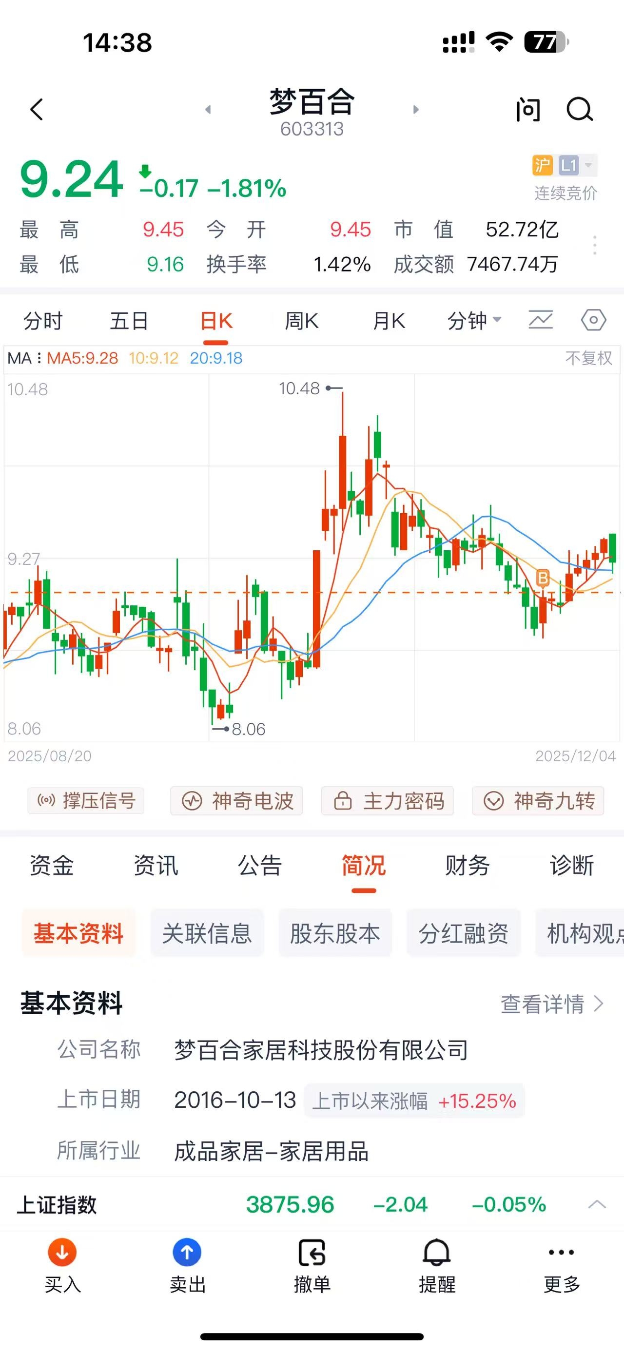 $梦百合(SH603313)$ 真怕怕被套腊月了,梦来个板哈?
