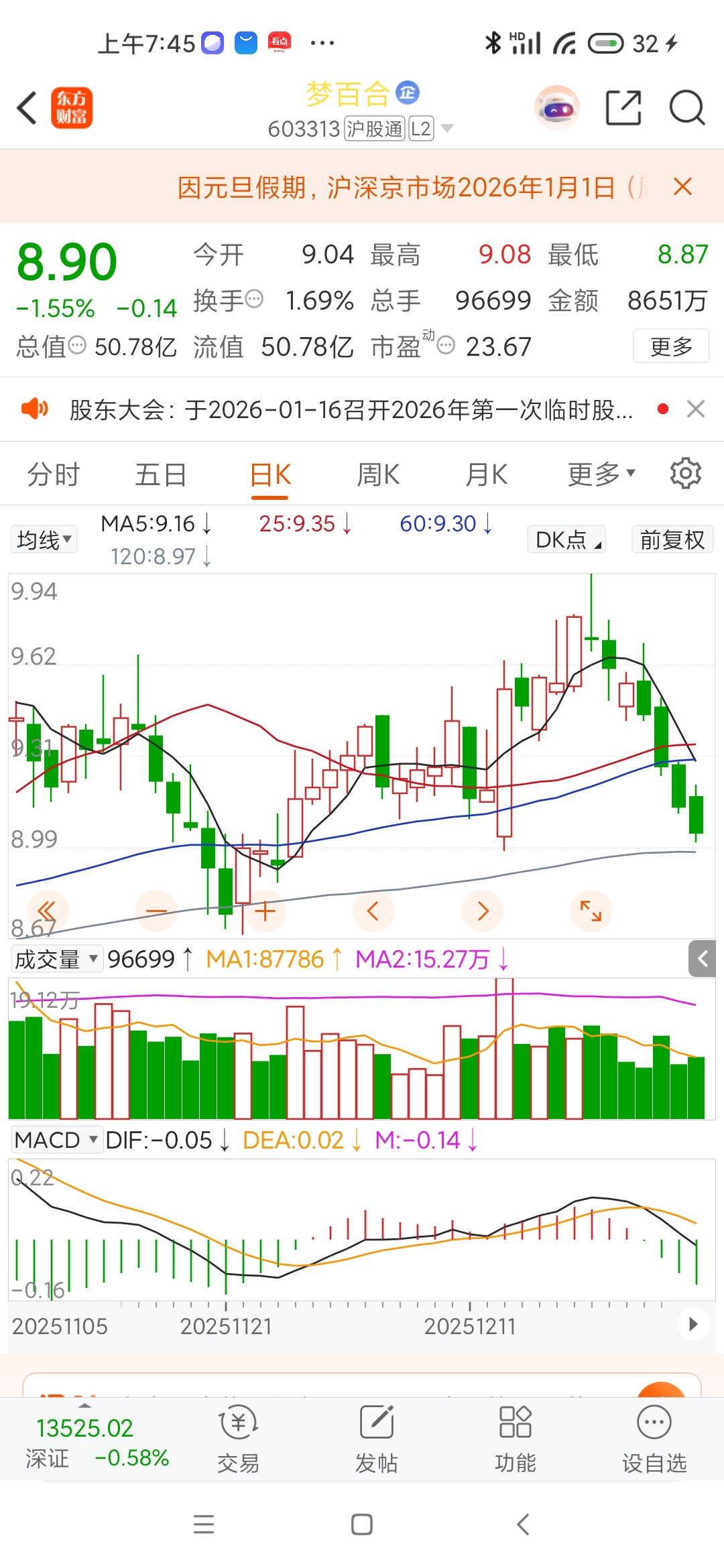 $梦百合(SH603313)$ 兄弟们不见反包阳不要进,此股低位上来股价也是触发过翻倍的,所以需要非常的小心,有二次探底的可能性,不要低估了主力的做盘能力和残忍度