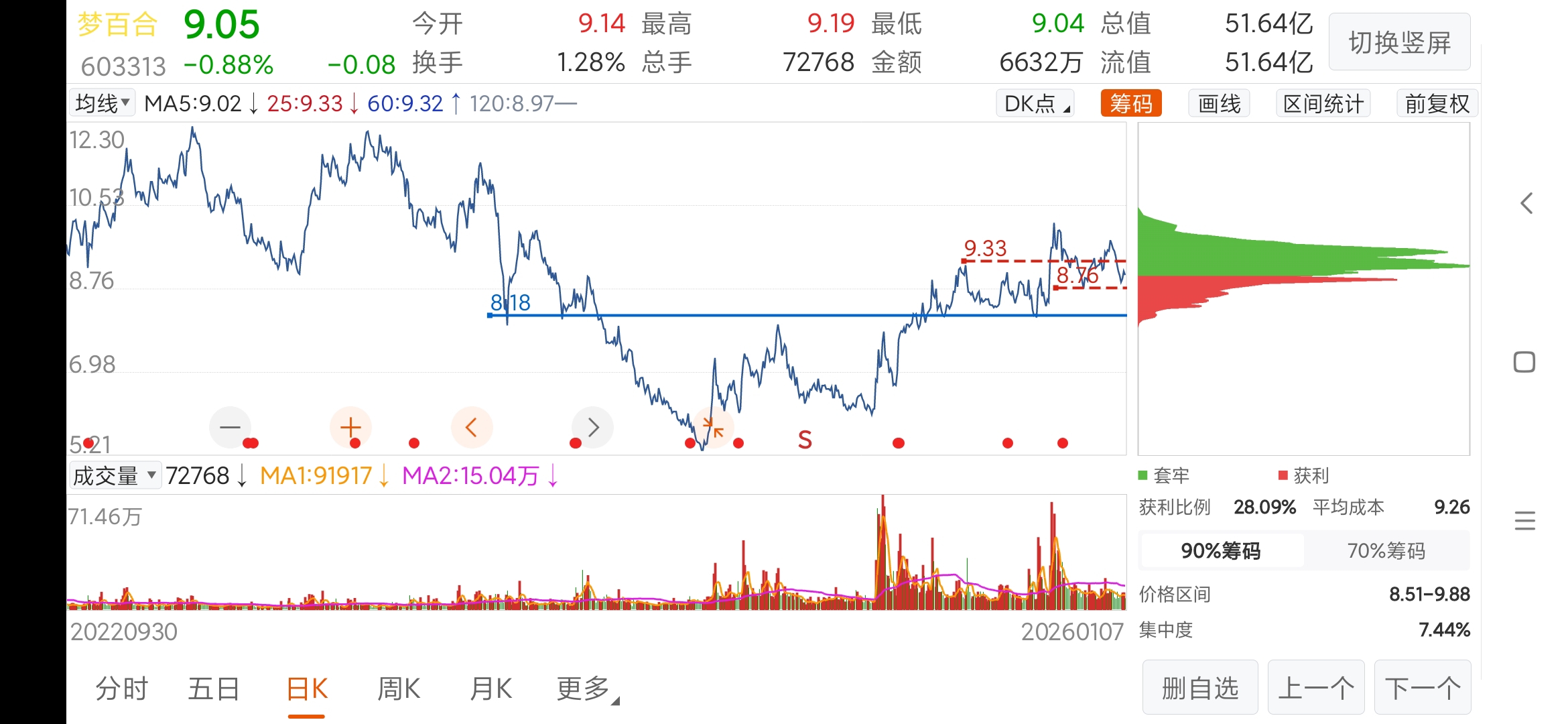$梦百合(SH603313)$ 底部获利筹码全部出清,筹码全部集中在8.46~9.9之间,平均持仓成本9.26,筹码集中度越来越高了,离拉升爆发不远了!就在春节前